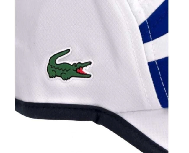 - Detalhamento: Boné quatro gomos, recortes diferenciados dos gomos, acabamento em marinho em toda extensão. marca Lacoste estampada na lateral esquerda e logo Lacoste aplicado na lateral direita. Faixa de ajuste com fecho de contato, faixa de transpiração branca;